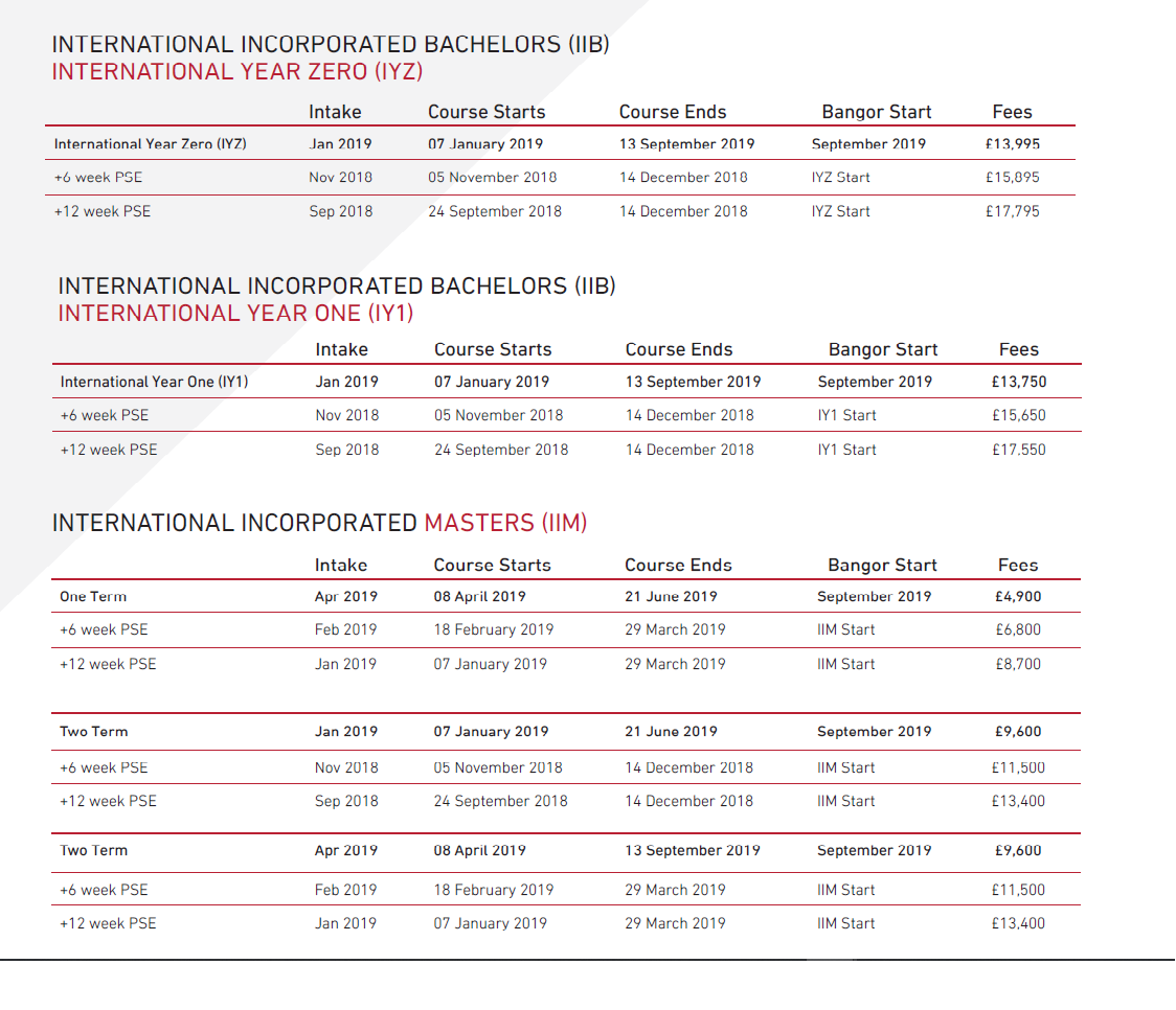 International Incorporated Bachelors (International Year one) – BSc (Hons) – Bangor